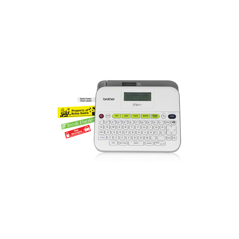 The P-touch D400 effortlessly produces labels for your office when needed. Thanks to fast printing and a large print height, you can quickly create crisp, easy-to-read labels up to 18mm wide.