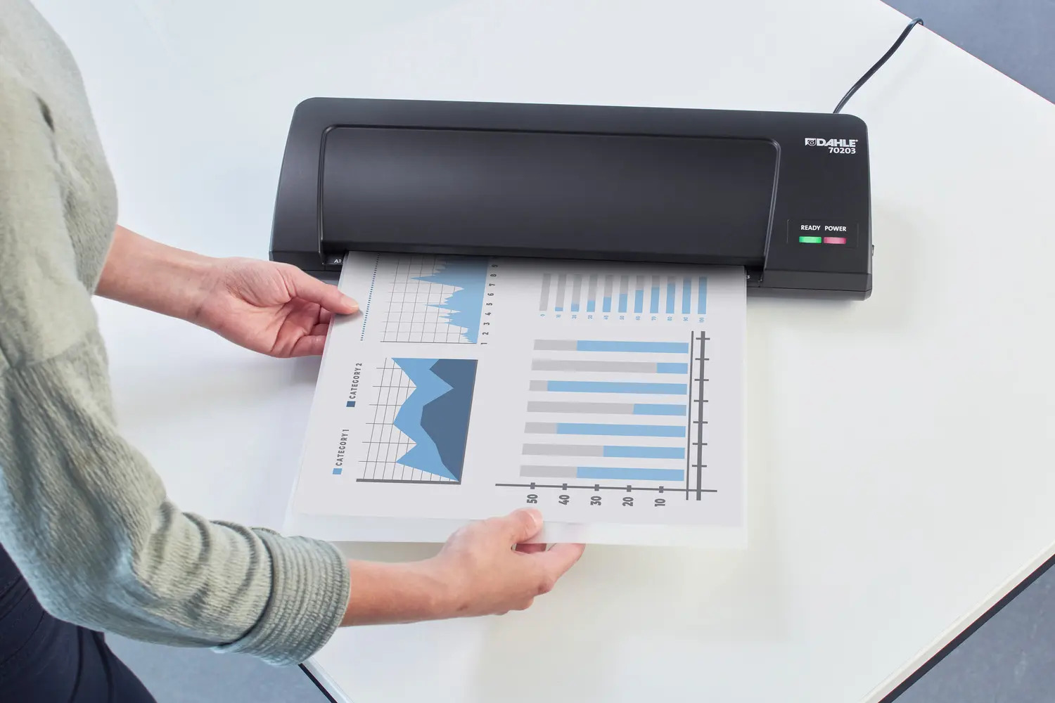 DAHLE 70203 – A3 formato laminatorius, skirtas didesnių dokumentų, plakatų ir informacinių lapų apsaugai. Palaiko iki 125 mikronų laminavimo vokelius ir užtikrina tolygų bei profesionalų rezultatą. DAHLE – patikimas Vokietijos gamintojas, siūlantis ilgaamžius dokumentų apsaugos sprendimus biurams ir švietimo įstaigoms.