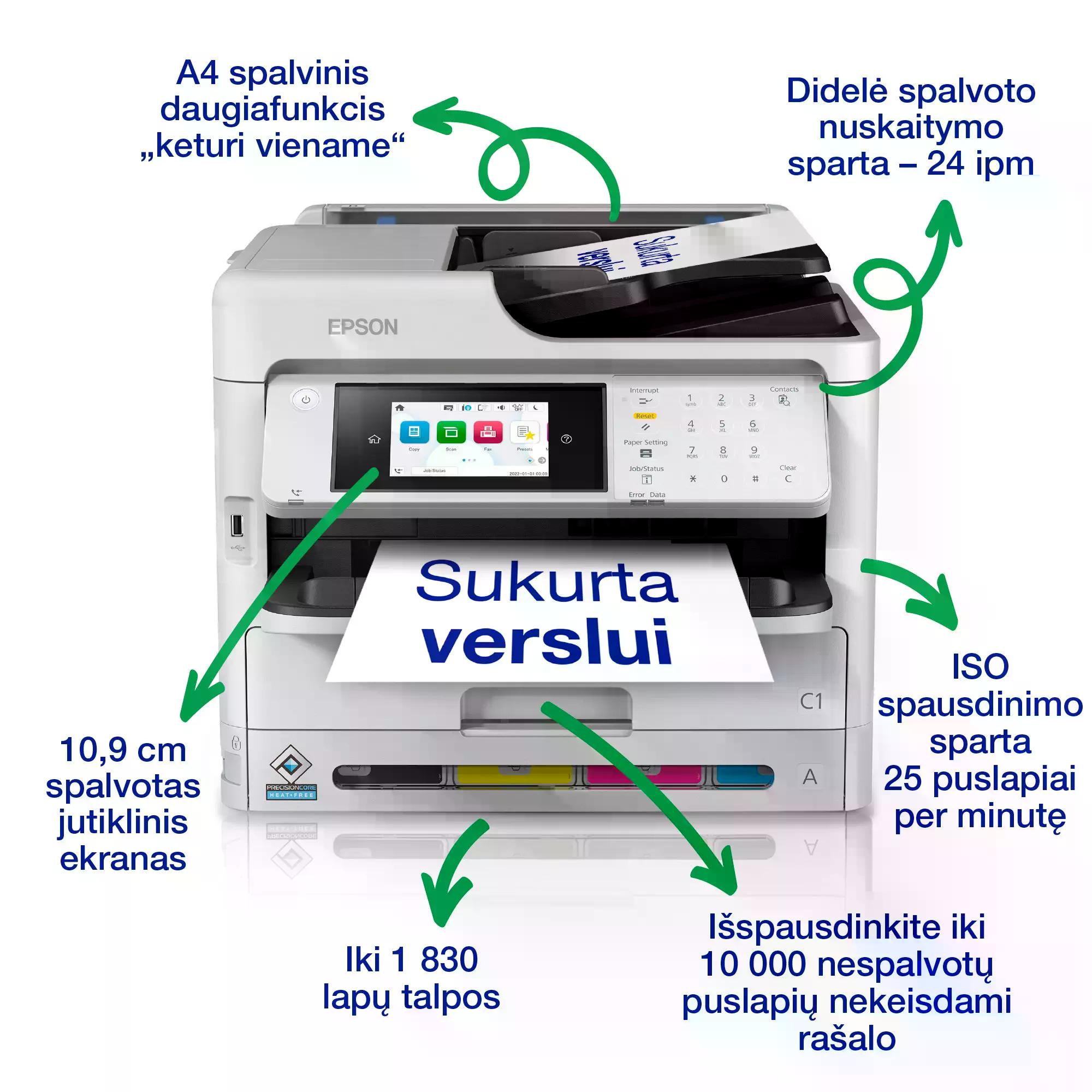Epson WorkForce Pro WF-C5890DWF – profesionalus A4 formato daugiafunkcis spausdintuvas verslui. Jis palaiko nuskaitymą, kopijavimą, automatinį dvipusį spausdinimą ir faksogramų siuntimą, užtikrindamas didelį našumą ir patikimumą. Šis modelis skirtas organizacijoms, ieškančioms efektyvaus ir ekonomiško spausdinimo sprendimo.